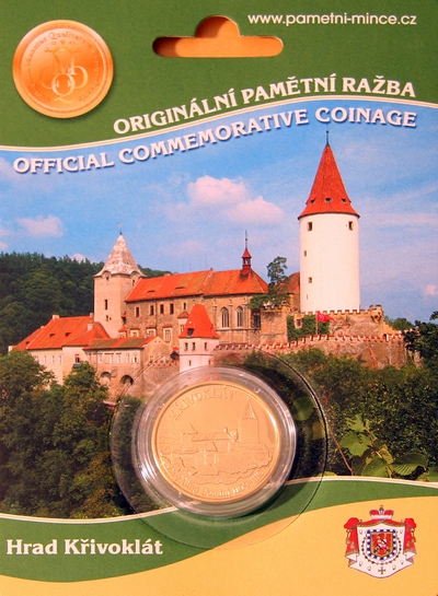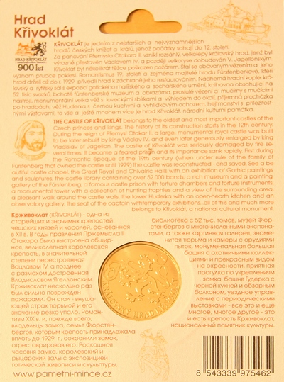 Na blistru je pohled na Hrad Křivoklát a základní informace o městě v češtině a angličtině.