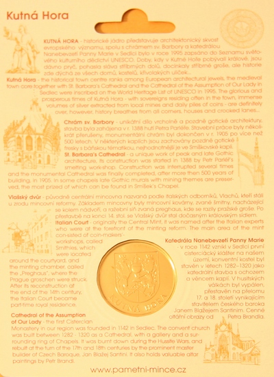 Na blistru je pohled na Chrám Sv.Barbory a základní informace o Kutné Hoře v češtině a angličtině.