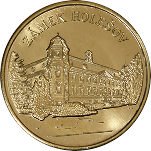 Holešovský zámek je volně stojící čtyřkřídlá dvoupatrová dvoutraktová budova s mansardovou střechou, která obestupuje obdélníkové nádvoří. Z nároží jsou vysunuty šestiboké věžice převyšující budovu o jedno patro. Zámek obklopuje hluboký vyzděný vodní příkop, původně překlenutý dvěma mosty. Ty vedly ke vchodům do budovy v ose hlavního a zahradního průčelí. Z příkopu se zvedá šikmá podnož stavby ukončená masivním kamenným podvalkem.